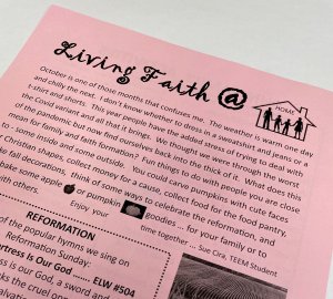 As part of the monthly newsletter distributed by the synod, the group provides a page of information for parents, grandparents, teachers, or other faith-shapers. Members of the group take turns writing the material for the newsletter. It is always printed on pink paper which makes it easy to find and make copies to distribute to congregation members.
